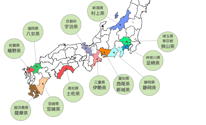 日本では、全国各地、様々なお茶が育てられています。